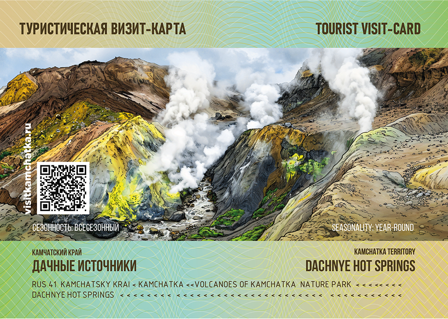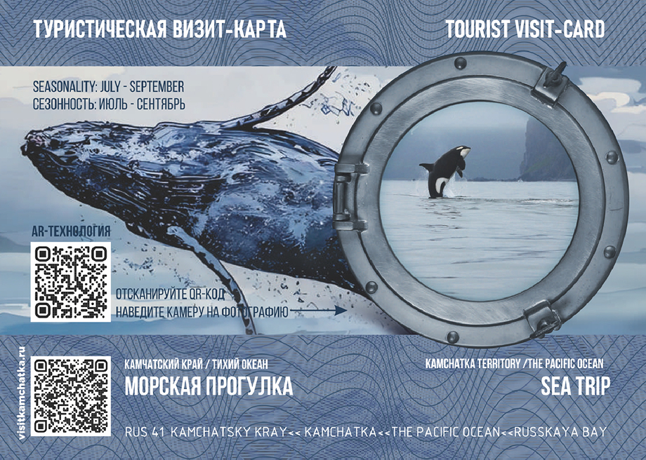 Визит-карта – яркий сувенир в Паспорте путешественника для тех, кто только планирует приключения, и тех, кто уже посетил уникальные места Камчатки и хочет сохранить воспоминания об этом.